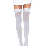 Opaque Thigh Highs With Satin Bow Accent - One Size - White