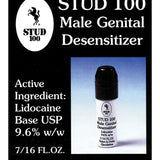 sensitivity of the penis. It contains 9.6% Lidocaine, a widely used topical anesthetic. STUD 100 is non-toxic, odorless, and ozone friendly, and can be used with branded latex condoms.