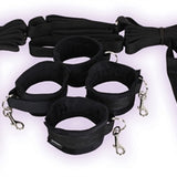 Turn any size bed into a place of binding pleasure. Restraint straps your partners arms or legs from the sides or the top and bottom of the bed. Portable and travel-sized. Includes 4 cuffs and restraint straps. Cuffs adjust from 4 - 12 inches.