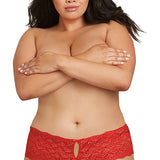 Heart stretch lace panty with open crotch and large cut-out heart detail on back.