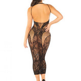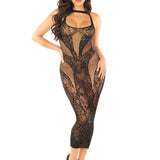 Seamless Rhinestone Lace and Net Body Con Dress - Os - Black
